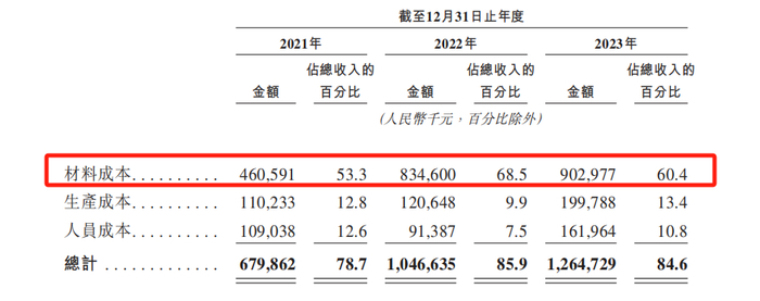 招股书显示:博泰车联网的材料成本分别为4.6亿、8.34亿、9.02亿,占总收入比重分别为53.3%、68.5%、60.4%。也就是说,博泰车联网每赚一个亿,就要支出6000多万芯片等原材料成本。