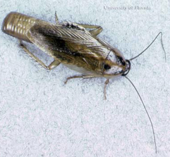 携带卵鞘的成年雌性亚洲蟑螂。摄影:RW Baldwin