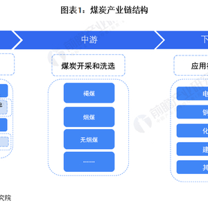 煤炭行业产业链上游为设备和系统,主要包括采掘机、掘进机等生产设备以及相关的智能化系统;中游为煤炭开采和洗选,主要煤种有褐煤、烟煤、无烟煤等;下游为应用领域,主要包含电力行业、钢铁行业、化工行业以及建材行业四大类行业。