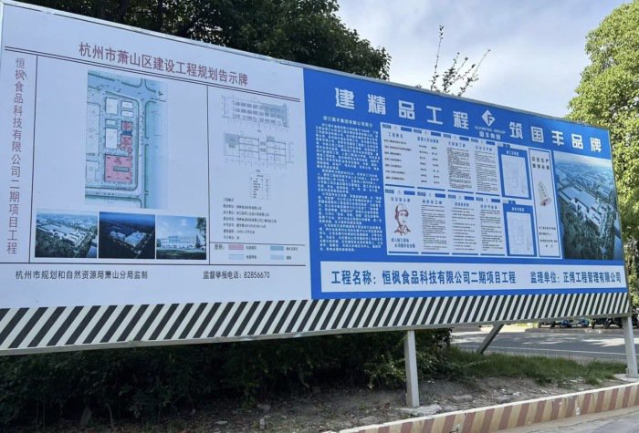 而宏胜集团在杭州的项目也在进行之中。7月18日,界面新闻在杭州萧山区恒盛路9号的宏胜饮料集团有限公司看到,其东侧恒枫食品公司二期工程正在施工。有工作人员告诉界面新闻,二期工程已经顺利完工,马上就要验收了,已在入驻设备。