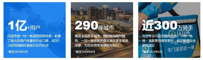 截至2024年6月,闪送已经覆盖了全国290座城市,凭借近300万的骑手大军,服务超过1亿用户。
