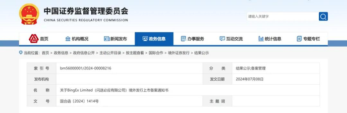 根据中国证监会官网的披露,BingEx Limited(闪送必应有限公司)已经完成了境外发行上市备案的关键一步。