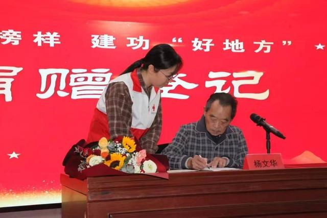 2023年9月,因为癌细胞转移,杨文华在高邮市人民医院接受住院治疗。住院期间,他应邀为医院党员、团员和职工代表等150人,进行了一场帮助他人、成就自己的事迹宣讲,并在宣讲会上向市红十字会志愿者递交了《志愿捐献遗体申请登记表》。杨文华深情地对大家说:“以捐献遗体这样的方式回馈社会,不仅是对生命的延续和升华,而且更好地诠释生命的价值和意义。”