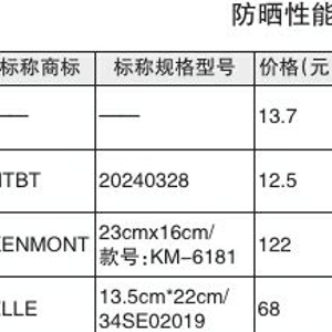 KENMONT、ELLE等3款样品实测UPF值与明示或宣称不符