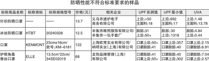 夏日炎炎,做好防晒至关重要,佩戴防晒又舒适的防晒口罩(面罩)成为很多消费者的首选。7月9日,上海市消费者权益保护委员会发布防晒口罩(面罩)比较试验结果,标称品牌为KENMONT、HTBT等4款样品防晒性能不符合标准要求;标称品牌为KENMONT、ELLE等3款样品实测UPF值与明示或宣称不符。