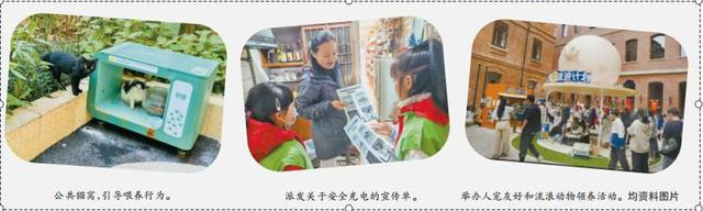 其中,一些优秀案例经过“大城小事”平台推广,可供其他基层单位参考。比如外滩街道推广“街猫”等公共猫窝,定点喂养流浪猫,避免扰民。外滩社区基金会通过“治理+公益”模式,链接资源。如,“宠物友好社区”项目得到街道辖区内的众安保险和云宠宝的支持,捐赠了宠物陪伴机器人、猫咪抗应激贴等物资,为科学救助社区流浪动物贡献了力量。