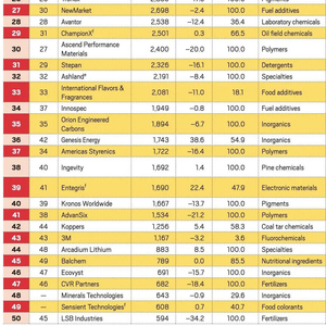 30、奥升德功能材料(Ascend Performance Materials) 聚合物 24.00亿美元/-20.0%/100%