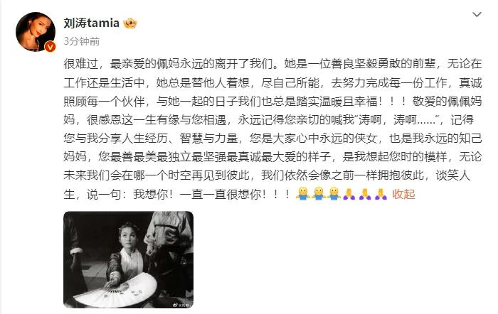 在后来的十年间,郑佩佩在社交平台分享生活时总不忘“艾特”刘涛,而刘涛也总是及时回应,并在留言中亲密称呼郑佩佩为“妈妈”。
