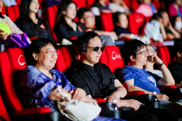 视障人士在亲友陪伴下观看影片《抓娃娃》