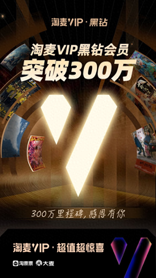 【环球网科技报道 记者 李文瑶】7月19日,淘麦VIP宣布旗下黑钻会员数量已突破300万。据了解,作为由淘票票与大麦联合发布的“电影+演出”联合会员体系,淘麦VIP自2021年7月正式上线以来,积累了超2000万活跃于线下娱乐领域的会员用户。