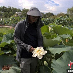 广昌县白莲产业发展中心内,郑兴汶博士正在研究莲花花瓣的性状。熊锦阳摄