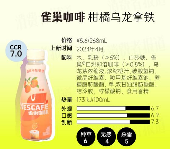 线下咖啡店总有天马行空的创新灵感,即饮咖啡雀巢也没有停下上新的脚步,尝试作答“一杯有趣的咖啡”。年初,雀巢咖啡一口气推出了6款个性化咖啡新品:橙C美式、柑橘乌龙拿铁、超浓缩咖啡液、冰袭拿铁、冰椰美式、燕麦拿铁以及中国市场首个咖啡果茶——果然轻咖。其中柑橘乌龙拿铁是2024年度限定口味,明亮柑橘、清新橙花、乌龙茶、咖啡4重香气在口腔中交织,会是怎样的一种味觉体验?