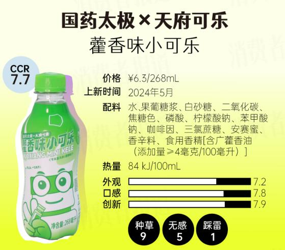 藿香味存在感低、可乐味占主导、中草药味道、上头、没有想象中难喝