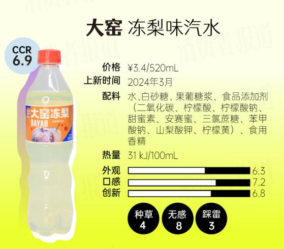 清汤大老爷:确实有冻梨汁的味道,像冬天猛嗦一口刚融化的冻梨,有东北特色,气泡也很足。但是太甜了,喝完分分钟升血糖。