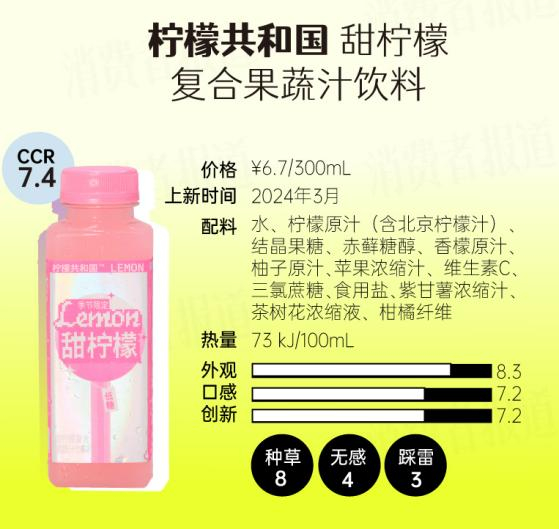 淘好物物:外观粉粉嫩嫩的,很少女心,但甜度不高,酸酸的很解腻,柠檬跟果蔬汁挺创新的。