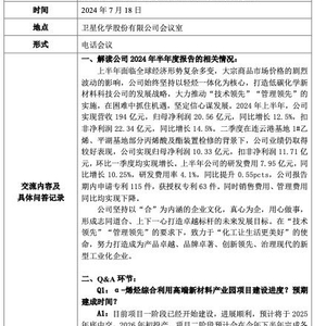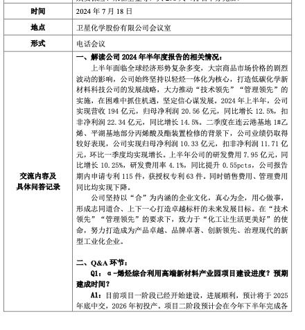 卫星化学向投资者解读了公司2024年半年度报告的相关情况: