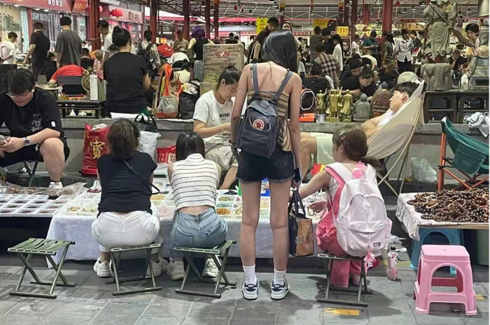 “以前市场里都是专业人士瞪大眼睛‘憋宝’,考验的是慧眼识珠的专业技能,后来市场成为了中老年人休闲娱乐的文化集市,追求‘捡漏儿’的刺激和乐趣,如今大量年轻人涌入文玩市场,‘颜值高’‘价格香’的特色文化产品成为了他们的首选。尤其是每周三和周五晚上的夜市,更是吸引了一大批‘都市不眠人’的关顾。一些‘文玩青年’看到十几元一串的水晶、玛瑙、琉璃手串,经常一买就是十几条,还会跟我们要批发价。”一位商户对记者说:“一条珠串传递出传统文化之美,更为年轻消费者提供了情绪价值。地摊文化和潮玩文化成为市场的发展新方向,也为疲惫了一天的年轻人提供了释放工作压力的休闲空间,让他们感受到传统文化传递出的好运气和新希望。”