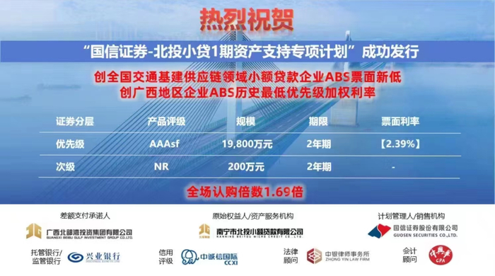 南宁市北投小贷ABS成功发行!