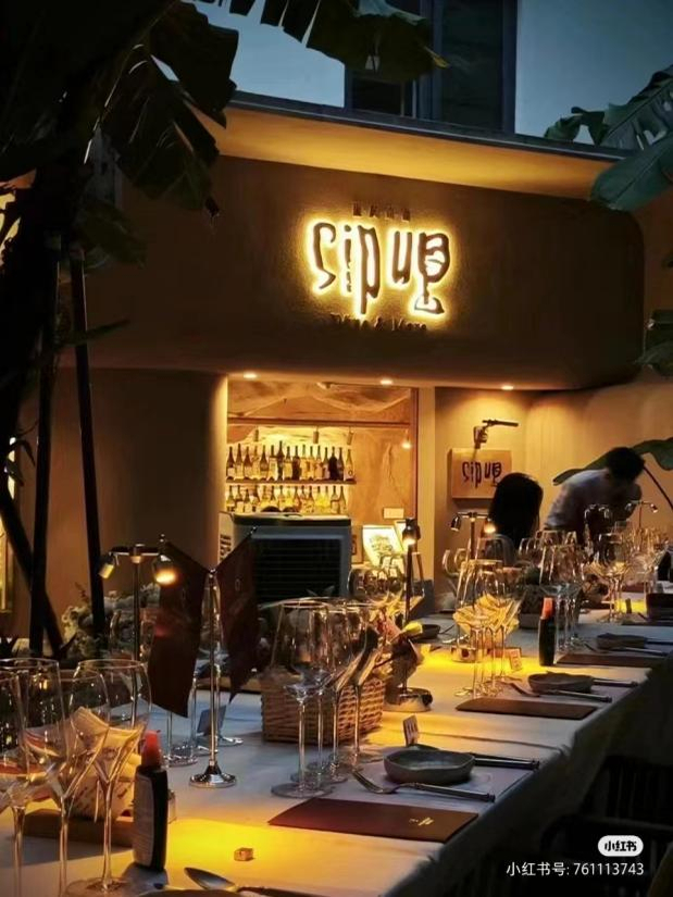 前两者以餐酒破圈,【Sip Up西皮葡萄餐酒馆】凭场景出头。瞄准高品位女性客群,定位新北欧艺术餐厅,通过还原欧洲小镇葡萄酒庄园氛围、独创葡萄酒烹饪的菜肴、艺术活动,打造“每日一杯酒的微醺艺术空间”。