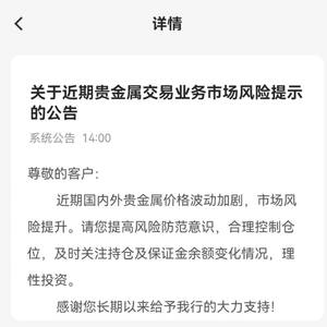 农行此前在上海金交所业务调整公告中也提示风险