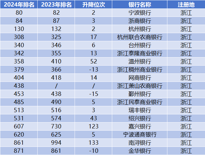 浙江有18家银行入围