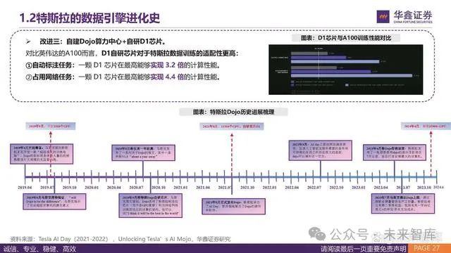 改进二:自建千人团队,从2D人工标注到4D自动标注。获取大量数据之后,需要有一个标注“清洁”的过程,符合条件之后才能使用。 数据的标注需要涵盖深度、速度、加速度信息。特斯拉2016年开始,仍是通过第三方外包数据标注,但存在响应慢,标注质量不够等问 题,到2019年开始自建1000人团队,从2D人工标注发展到4D自动标注。特斯拉自动标注系统可以取代 500 万小时的人工作业量,人工 仅需要检查补漏。