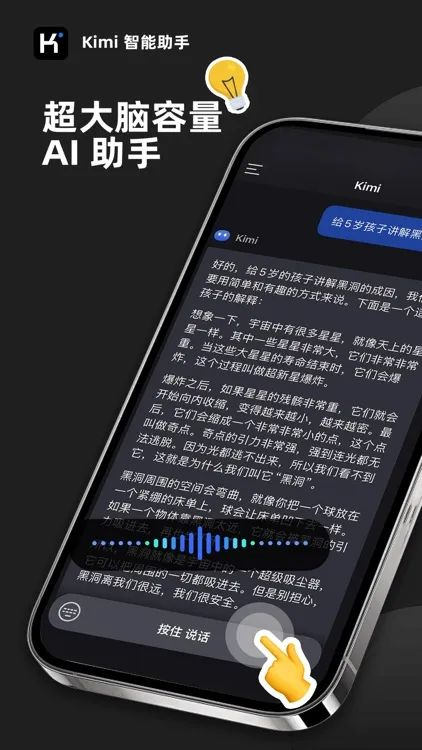 2023年10月10日,月之暗面发布了首个支持输入20万汉字的智能助手产品Kimi Chat。