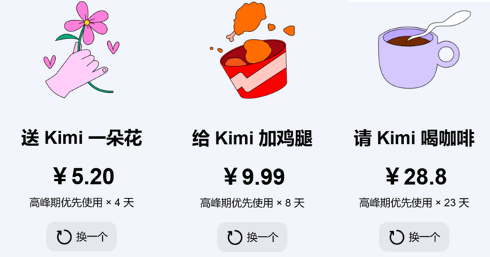 但Kimi目前在商业化这部分比较谨慎推进,用户依然可以免费不限次数使用。仅开通“给Kimi加油”的高峰期优先使用的打赏渠道。