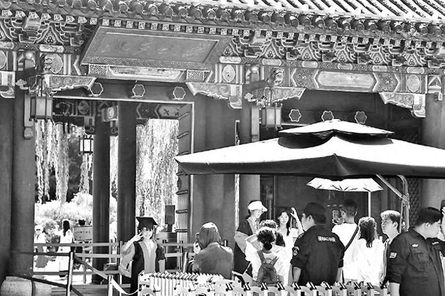 除了从外地赶来的研学团,在北大里,北青报记者还见到了“一日游”团体。一位家长表示,这个团里大部分是亲子游,每人528元,由一位北大学生带着参观并讲解,随后在北大食堂就餐,“其实还是自己来好,但就是不好预约。”这位家长说。