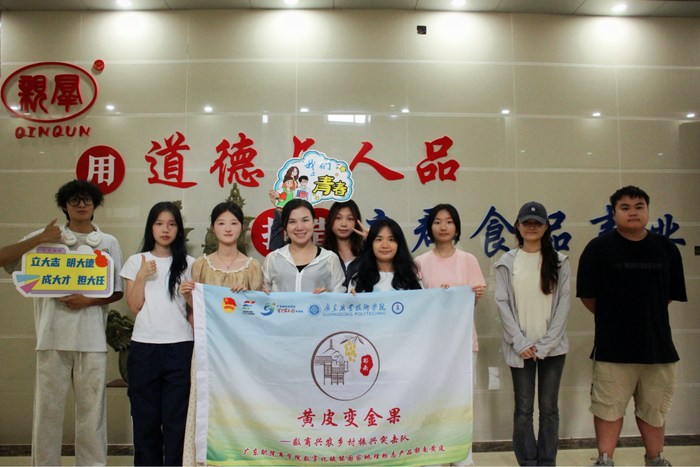 在前往云浮郁南之前,指导老师和队员们多次召开会议,以确保各项工作的顺利开展。他们根据队员们的特长进行了明确的分工,准备了三下乡横幅、海报等材料,并搜集了关于郁南无核黄皮和周边产品的详细资料,并将其翻译成英文。同时,他们还与当地进行了对接工作。7月16日下午,指导老师和突击队成员抵达了郁南县职业技术学院,并前往广东亲群食品科技有限公司参观企业,深入熟悉了黄皮周边产品。他们细致了解了黄皮制品的整个生产过程及当前市场态势,并认真规划了直播内容。力求通过镜头精准展现郁南这一地方特色农产品的风采,将其打造成为一张亮丽的名片,呈现给广大观众。