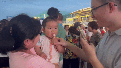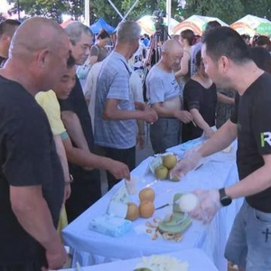 华灯初上,歌舞升平,花米庄行音乐美食伏羊广场,一场蜜梨品鉴会在锣鼓声中拉开帷幕。只见,半圆形的试吃台上,来了不少“蜜梨朋友”:褐皮的早生新水、绿皮的翠玉、黄皮的沪晶梨18号……七八个品种依次切成块儿,白色的果肉,香气四溢,一“开摊”,就吸引不少市民扎堆试吃,场面热闹非凡。“有的甜一点,有的淡一点,总是来说每个梨味道都不错。”“翠玉最好吃,接下来就是早生新水,我最喜欢这两个。”不少市民一边试吃一边分享着心中的“最爱”。