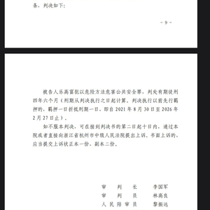 2022年6月24日,桐庐县法院作出一审判决,被告人乐高富犯以危险方法危害公共安全罪,判处有期徒刑四年六个月,刑期自2021年8月30日至2026年2月27日止。