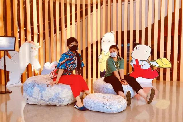 在两位初中生摊位的隔壁,控江中学创意发声社团展示了可回收物的另一种实用价值——通过高中生的巧手,变成剧场和学校里的公共座椅。