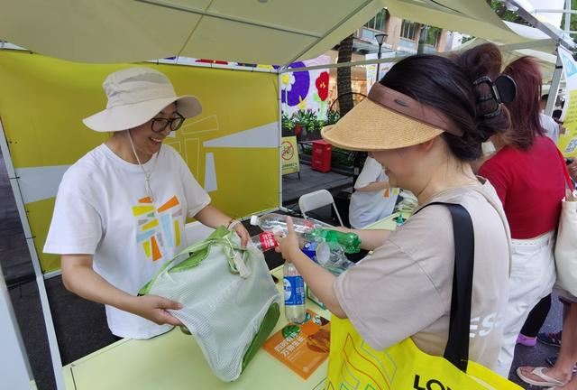7月20日、21日,杨浦区大学路限时步行街打造成限时减碳循环街,鼓励市民游客交易闲置物品或将可回收物进一步细分。