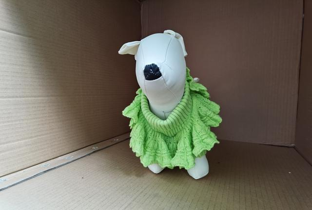 某品牌发布的一款荷叶边全羊绒宠物毛衫,采用海洋塑料再生纱线,获得了“碳中和”认证。