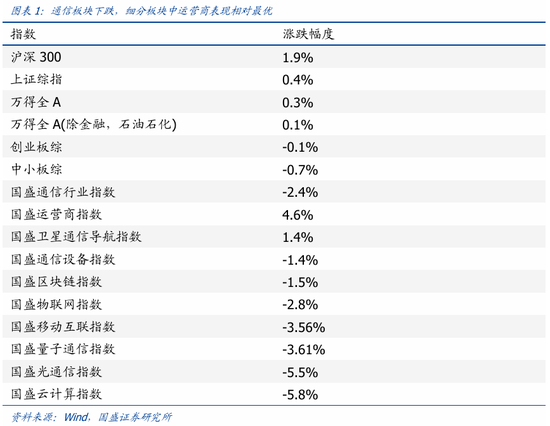 2.行情回顾:通信板块下跌,运营商表现最佳