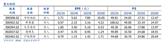 光通信:中际旭创、新易盛、天孚通信、太辰光、腾景科技、光库科技、光迅科技、德科立、联特科技、华工科技、源杰科技、剑桥科技、铭普光磁。