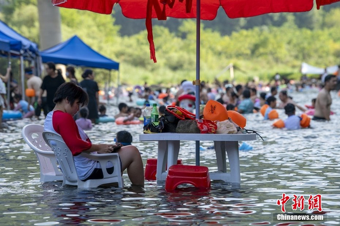 天气太热,有人选择在清澈的溪水里消暑,享受一份夏日清凉。