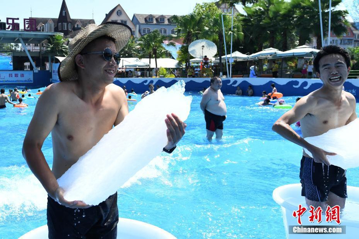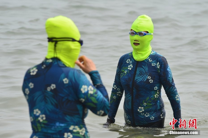 在炎热夏日,也有人“极端”地将头浸入水中降温。