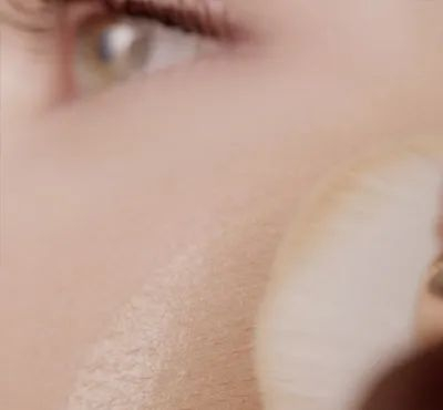 鼻翼、两颊区域,可少量多次叠涂,用粉扑轻盈点压。