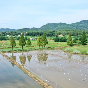 安徽省太湖县,成群白鹭栖息于农田中,绘就田园画卷。刘辉 摄