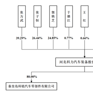 本次发行前,张万武、郭艳芝夫妻及他们的儿子张子恒合计控制科力装备90.58%的股份;员工持股平台天津科达持有公司6.69%的股份。