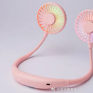 在产品外观上,很多挂脖小风扇使用的是卡通形象和彩色外壳,容易被小朋友当作玩具。如果不小心触动开关,小朋友的手指碰到扇叶,很可能会受伤。需要注意的是,国家强制性标准明确规定“器具外壳的形状和装饰,不应使器具容易被孩子当作玩具”。