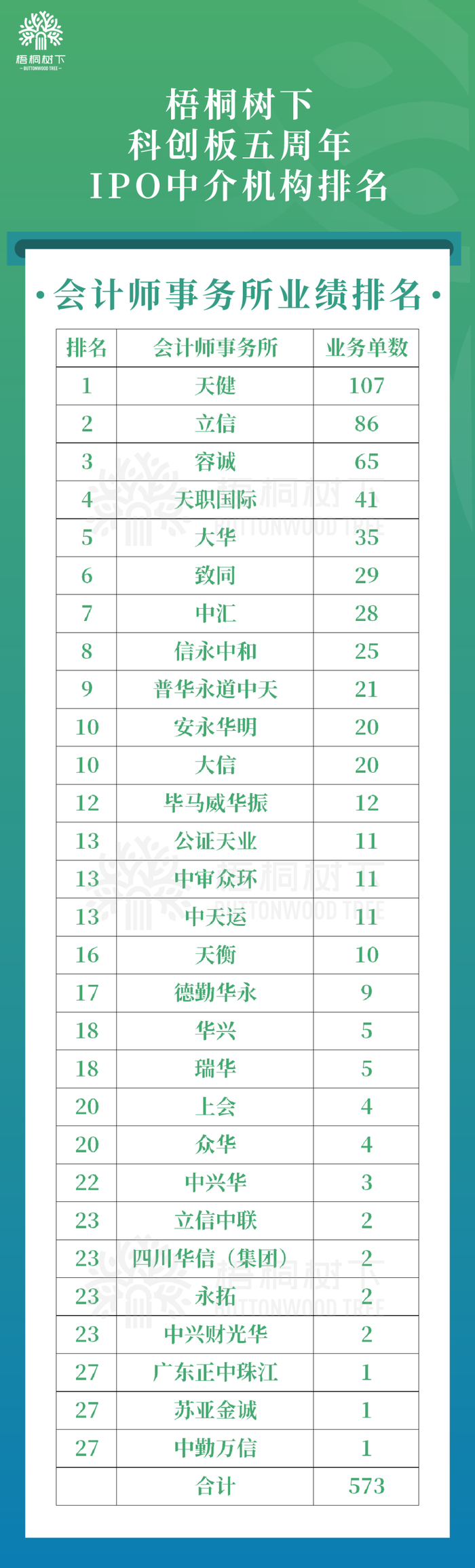 共有29家会计师事务所为这573家科创板上市公司提供了IPO审计服务。