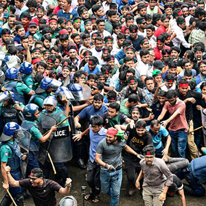 仅从冲突程度、伤亡情况等方面来看,此次“反配额制”抗议规模已然超过以往。自7月初抗议进入第二阶段后至今,“学生反歧视运动”抗议群体和警方及人盟下属学生组织“孟加拉学生联盟”(Bangladesh Chhatra League)发生暴力冲突,累计造成上百人死亡、超过1.1万人受伤,就连平民和记者也有无辜伤亡,哈西娜也公开表态:“我谴责每一起杀害事件。”