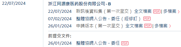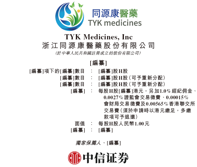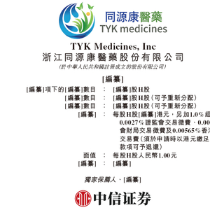 2024年7月22日,来自浙江湖州的浙江同源康医药股份有限公司TYK Medicines, Inc(简称"同源康医药”)在港交所披露聆讯后的招股书,或很快在香港IPO上市。其于2024年1月26日在香港递交招股书。