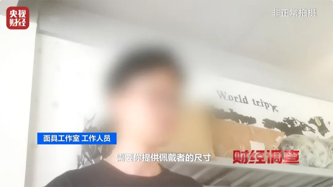 为了验证这些产品的真假,记者在客服的指引下来到了一家网店的线下工作室。工作人员向记者介绍只有硅胶人脸的面具售价3200元,带植发的6800元,定制的则需要15600元,并且需要提供面部特征的数据。