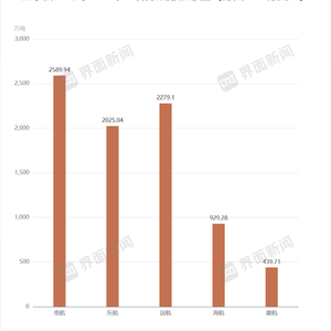 其中,三家公司二氧化碳排放量突破千万吨。分别是南航2589.94万吨, 同比上升78.63%;东航2025.04万吨,同比上升103.66%;国航2279.1万吨,同比上升126.71%。