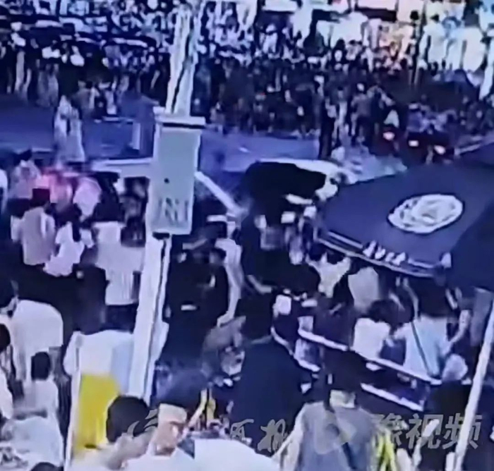 据顶端新闻此前报道,7月21日晚,有网友称长沙解放西路有突发状况,多段网传视频显示,疑似为商业步行街交叉路口人群聚集处发生车祸。现场有数名群众尝试抬起黑色车辆。另一视角视频显示,现场有大面积散落的物品,有伤者坐在地上。