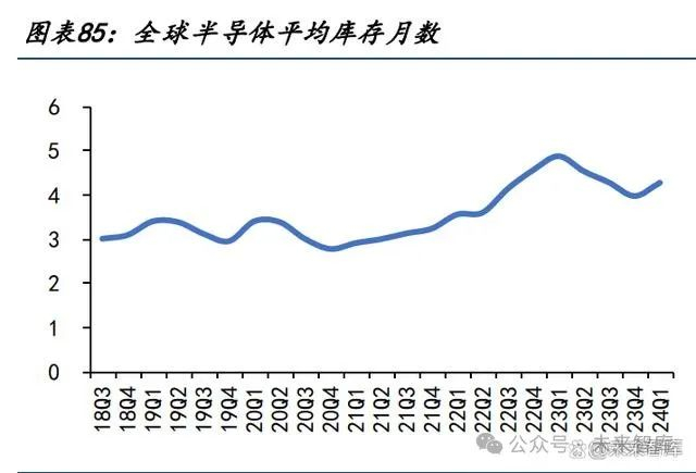 我们观察全球半导体公司库存月数,在 23Q1 达到顶峰 4.9 个月,其后连续 3 个季度下滑, 至 23Q4回顾到正常 4 个月水位;国内半导体设计公司平均库存下滑的更为剧烈,其平均 库存月数在 23Q1 达到最高 8.6 个月之后,连续下降至 23Q4 的最低 5.7 个月。自 24Q1 开 始,随着需求持续回暖,存储器等芯片价格逐步修复,半导体库存水位开始回升。我们可以看到次轮半导体行业主动去库阶段,至 23Q4 库存水位见底后正式结束,24Q1 开始行业 步入正常供需匹配阶段,接下来随着需求持续改善,芯片价格有望逐步修复。